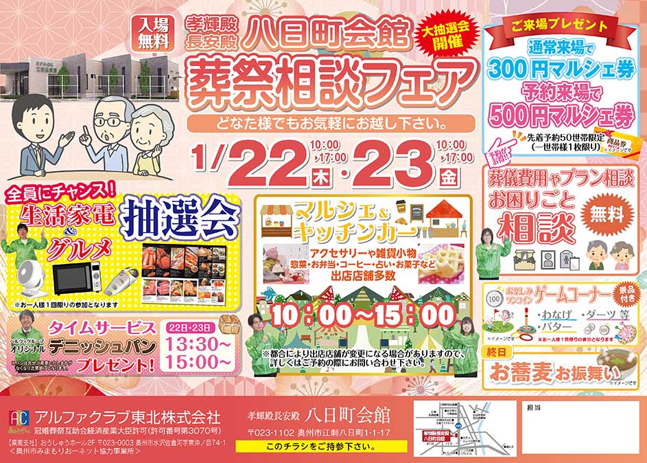 <岩手県>【1月22日~23日 孝輝殿長安殿 八日町会館 葬祭相談フェア】お葬式や相続のわからないこと、じっくり聞けるイベント☆参加無料☆