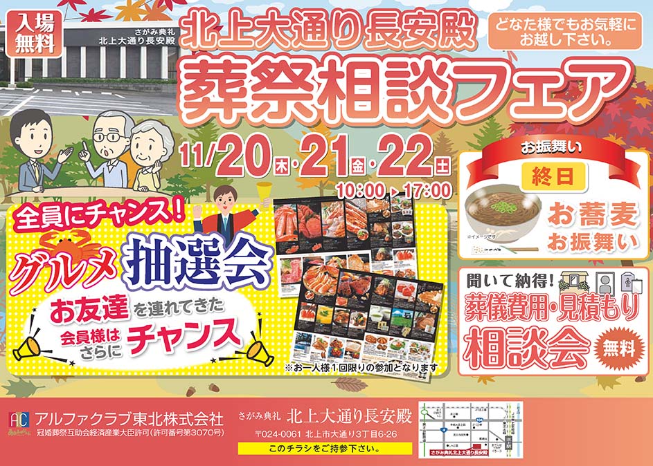 <岩手県>【11月20日~22日 北上大通り長安殿 葬祭相談フェア】お葬式や相続のわからないこと、じっくり聞けるイベント☆参加無料☆