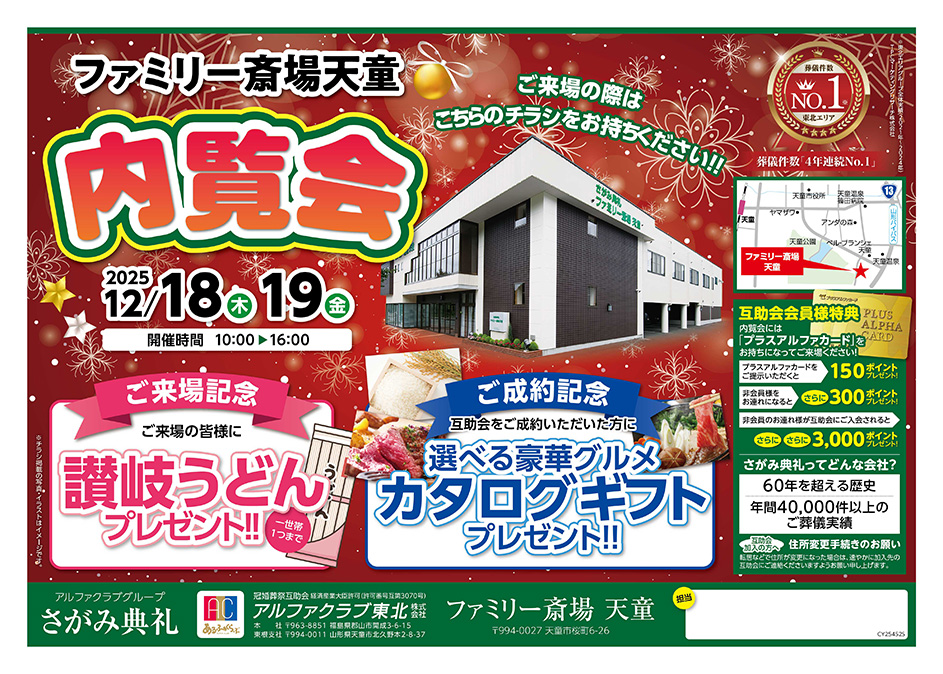 <山形県>【12月18日~19日 ファミリー斎場 天童 内覧会】お葬式や相続のわからないこと、じっくり聞けるイベント☆参加無料☆
