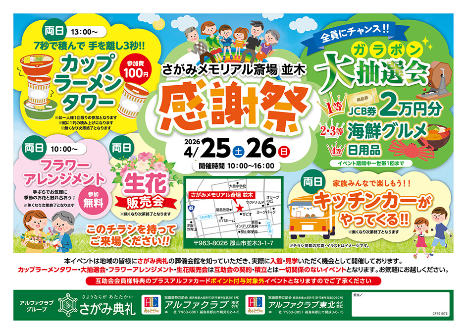 <福島県>【4月25日~26日 さがみメモリアル斎場並木 感謝祭】お葬式や相続のわからないこと、じっくり聞けるイベント☆参加無料☆