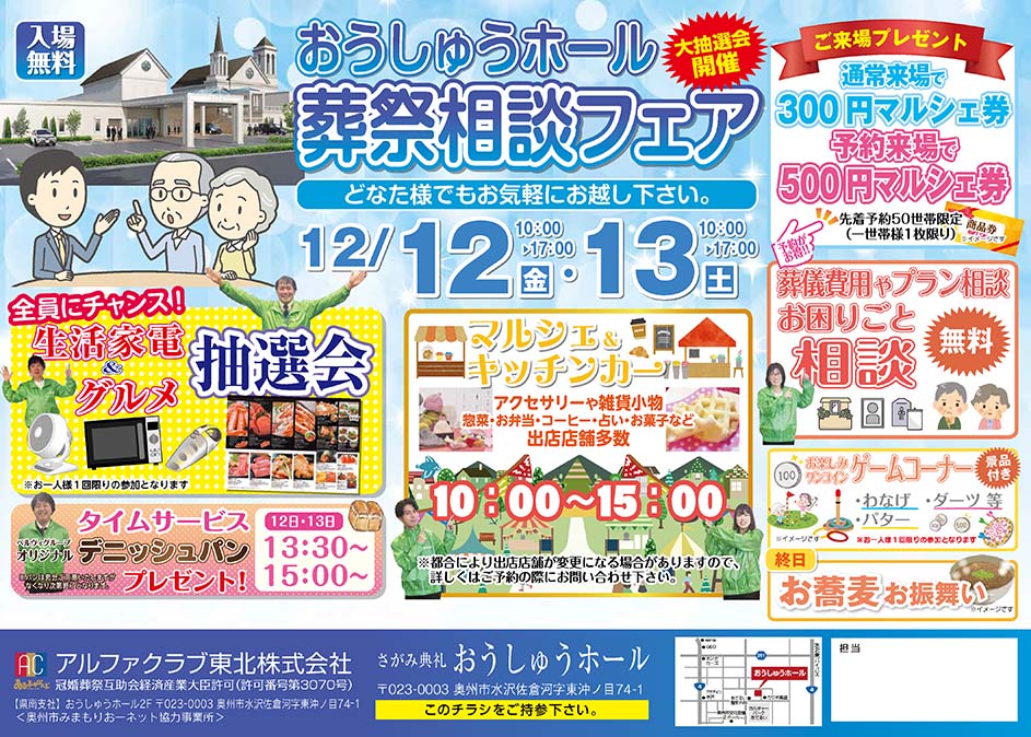 <岩手県>【12月12日~13日 おうしゅうホール 葬祭相談フェア】お葬式や相続のわからないこと、じっくり聞けるイベント☆参加無料☆