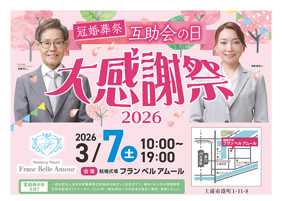 <茨城県>【3月7日 フランベルアムール 冠婚葬祭互助会の日大感謝祭】お葬式や相続のわからないこと、じっくり聞けるイベント☆参加無料☆