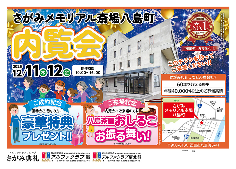 <福島県>【12月11日~12日 さがみメモリアル斎場 八島町 内覧会】お葬式や相続のわからないこと、じっくり聞けるイベント☆参加無料☆