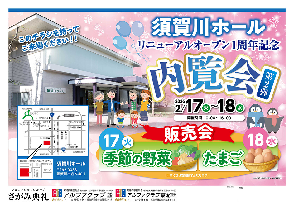 <福島県>【2月17日~18日 須賀川ホール リニューアルオープン1周年記念内覧会第2弾】お葬式や相続のわからないこと、じっくり聞けるイベント☆参加無料☆