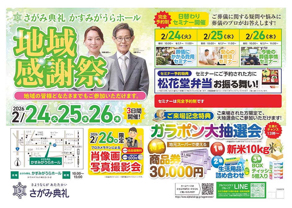 <茨城県>【2月24日~26日 さがみ典礼 かすみがうらホール 地域感謝祭】お葬式や相続のわからないこと、じっくり聞けるイベント☆参加無料☆