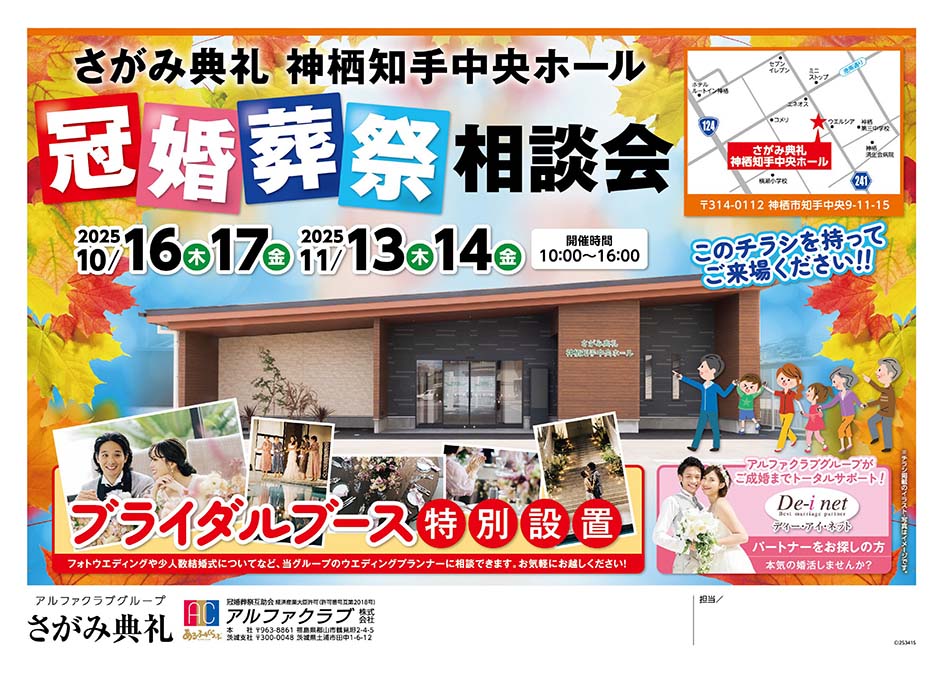 <茨城県>【11月13日~14日 さがみ典礼 神栖知手中央ホール 内覧会】お葬式や相続のわからないこと、じっくり聞けるイベント☆参加無料☆
