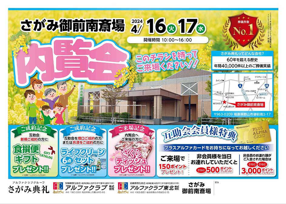 <福島県>【4月16日~17日 さがみ御前南斎場 内覧会】お葬式や相続のわからないこと、じっくり聞けるイベント☆参加無料☆