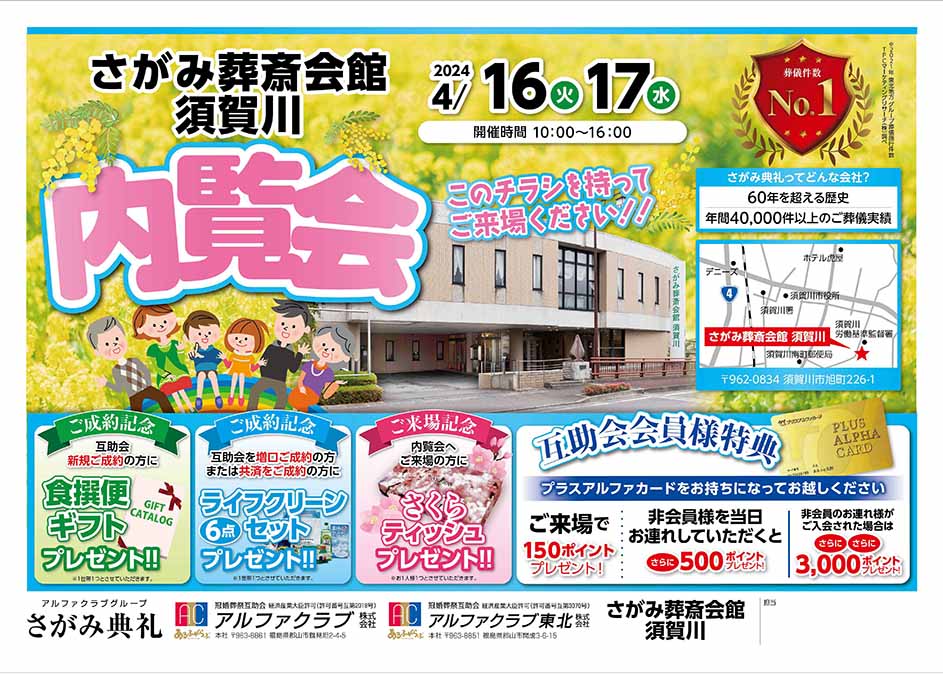 <福島県>【4月16日~17日 さがみ葬斎会館須賀川 内覧会】お葬式や相続のわからないこと、じっくり聞けるイベント☆参加無料☆