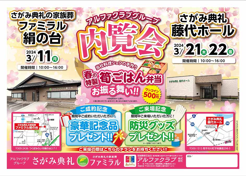 【3月11日 家族葬のファミラル絹の台 内覧会】お葬式や相続のわからないこと、じっくり聞けるイベント☆参加無料☆<茨城県>